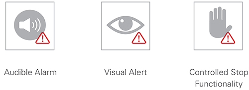 + Notifies operators traveling in the tractor-first direction when the system detects objects in the lift truck’s path and will then decelerate to a stop.